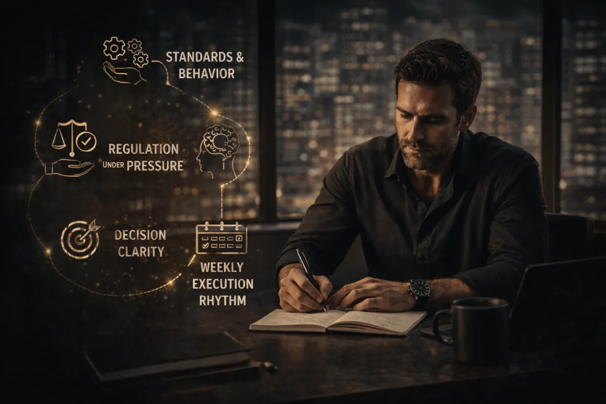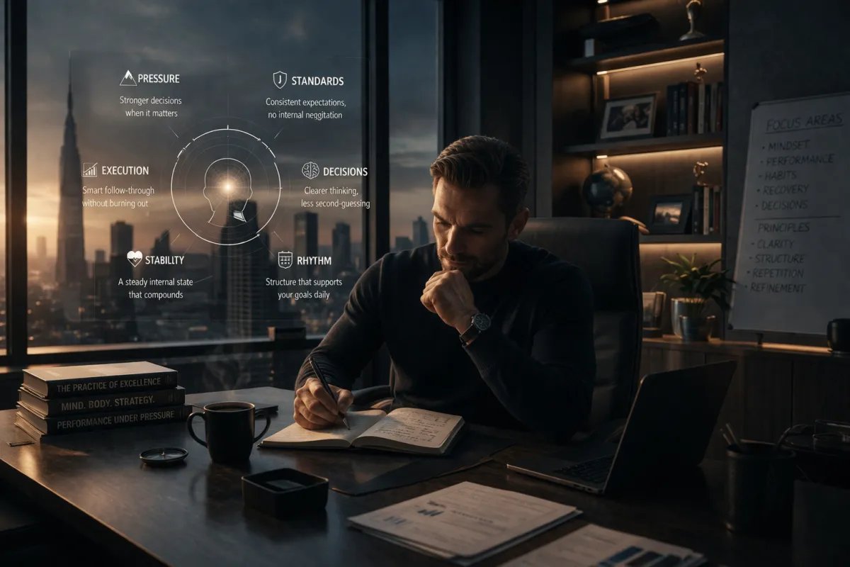 This advisory work centers on the internal structure behind performance. It focuses on the relationship between standards and behavior, regulation under pressure, decision clarity in demanding environments, and the development of a weekly execution rhythm that is stable enough to hold under real conditions. Each session is designed to simplify the way you operate, not complicate it, and to refine what is actually happening in practice rather than endlessly discuss ideas in the abstract.