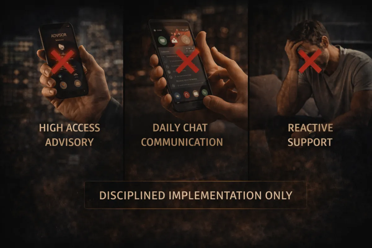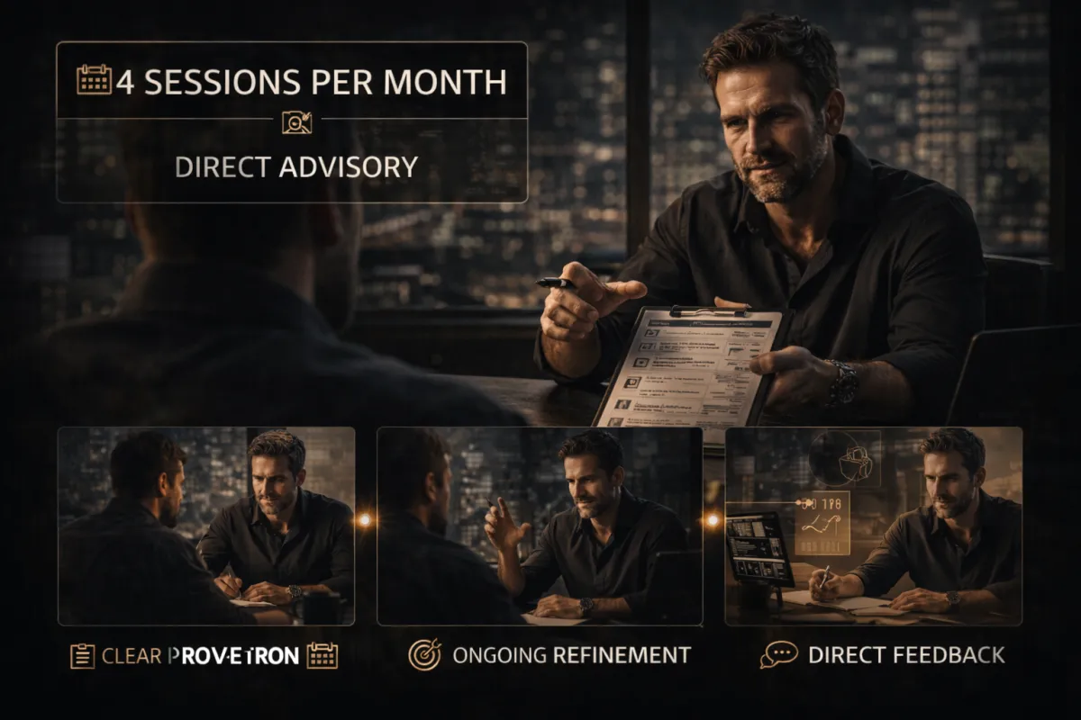 This is not high access advisory, daily communication, or reactive support. It is a disciplined monthly implementation container built for serious operators who want steadier performance.