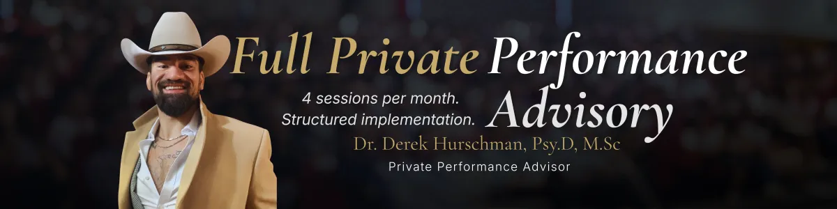The Full Performance Private Advisory Package includes four structured one on one sessions per month, direct and disciplined feedback from Dr. Derek Hurschman, a clear implementation focus for each week, and ongoing refinement of patterns as they appear in real time. This is not casual conversation, and it is not open-ended support. It is structured work with a clear purpose and a clear standard.